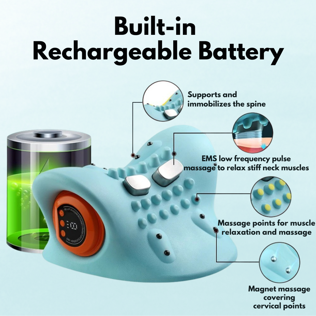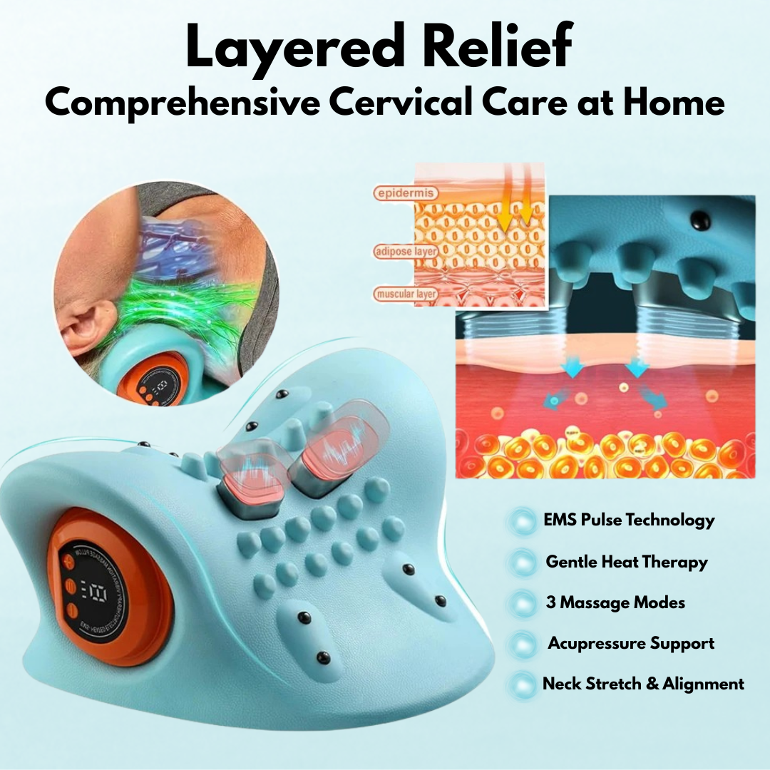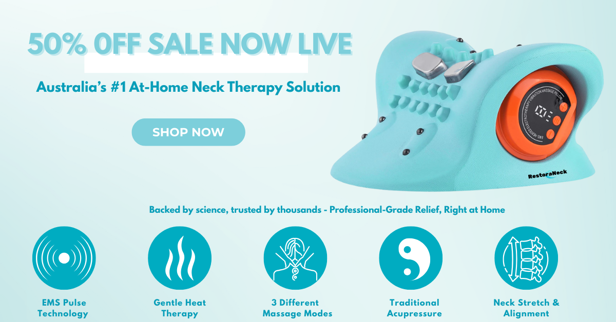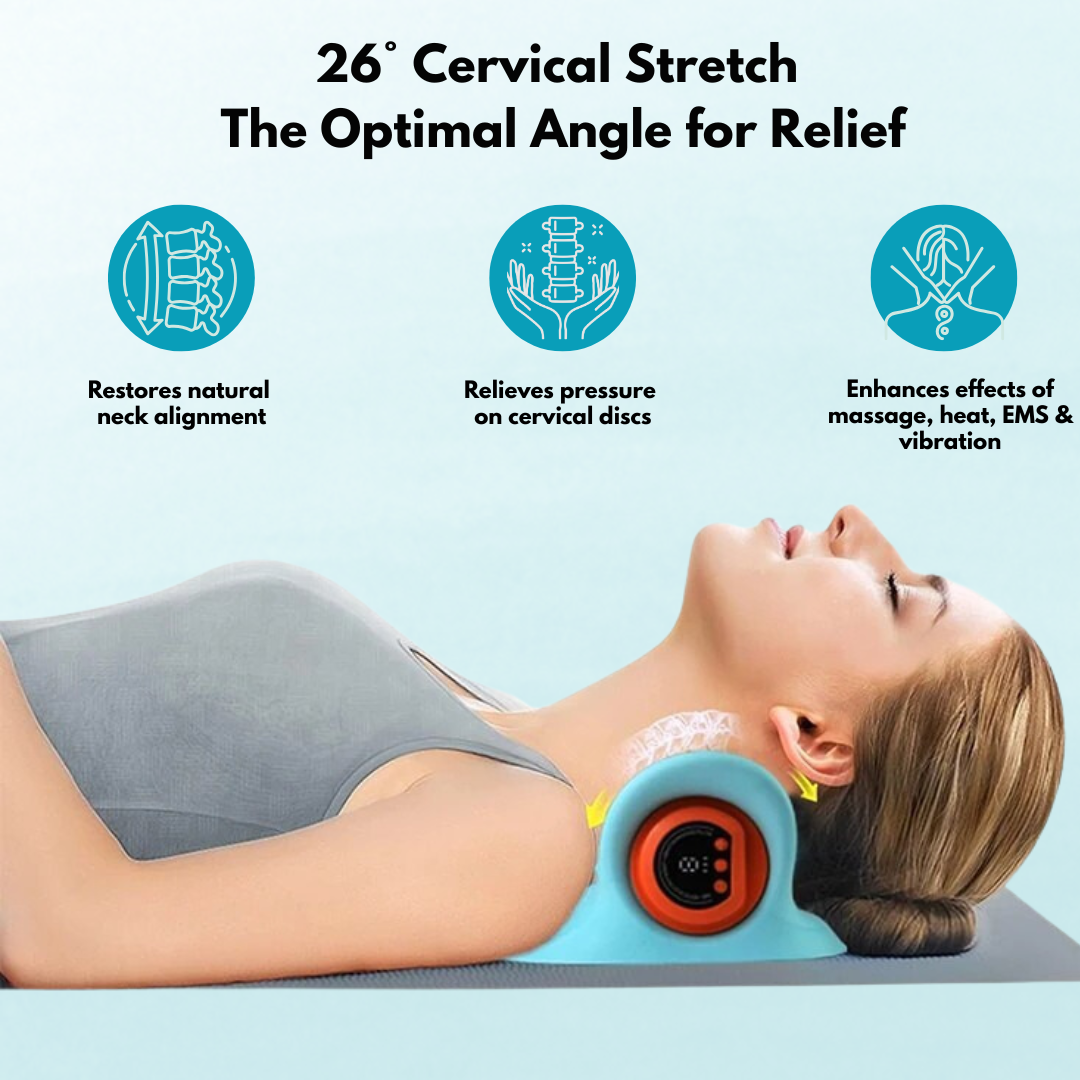 RestoraNeck™ combines EMS pulse technology, gentle stretching, heat therapy, vibration massage, and acupressure — delivering a complete solution for lasting neck comfort.